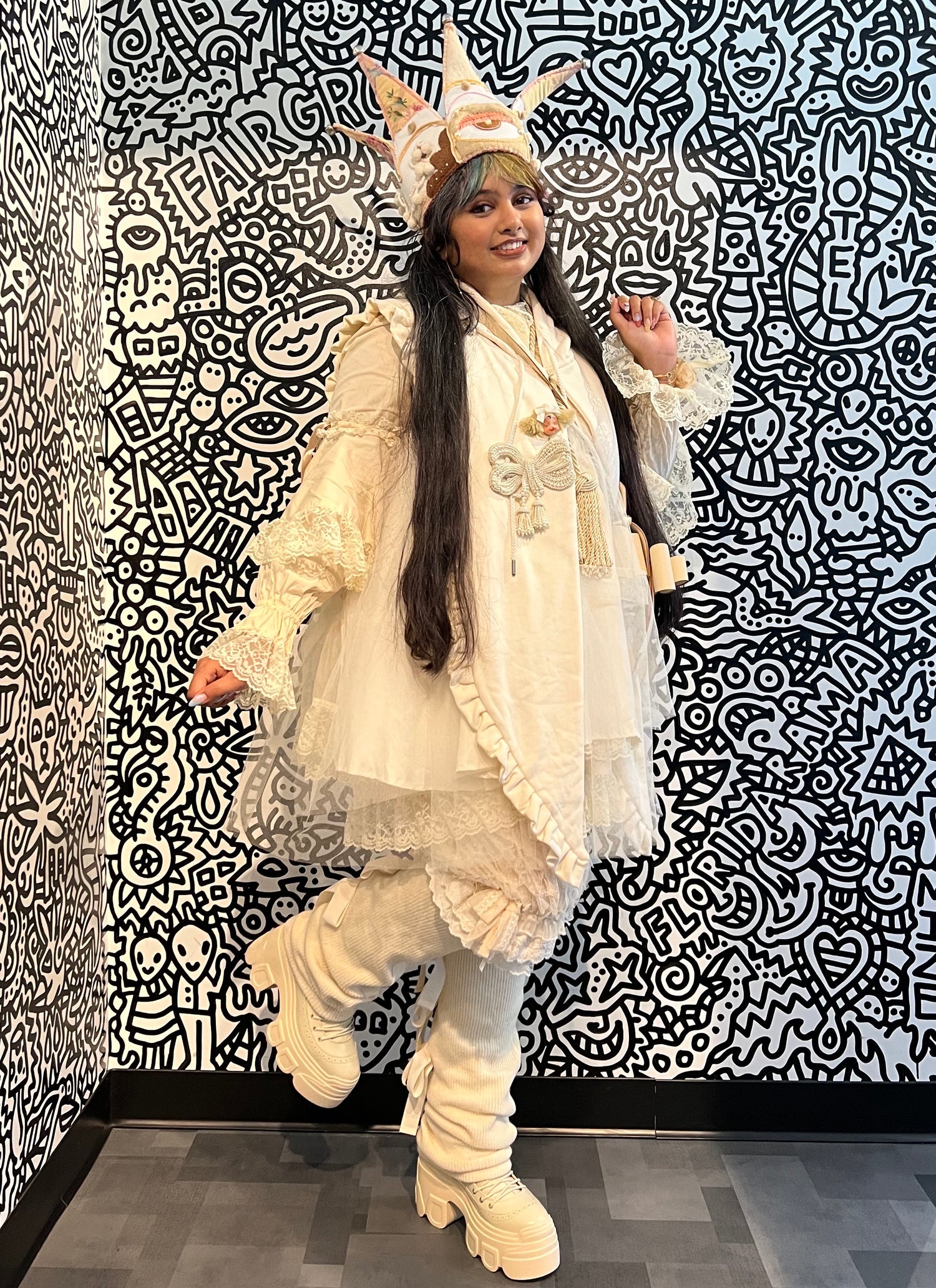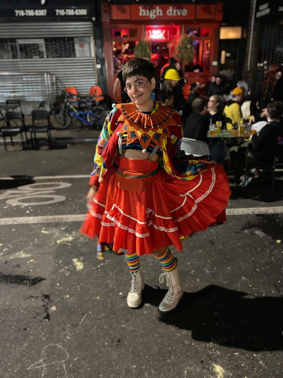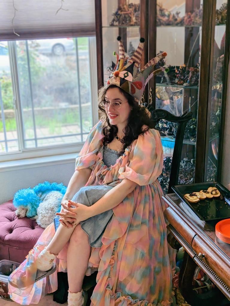 Marisa (@missmarisacreates) wearing her patchwork harlequin crown!