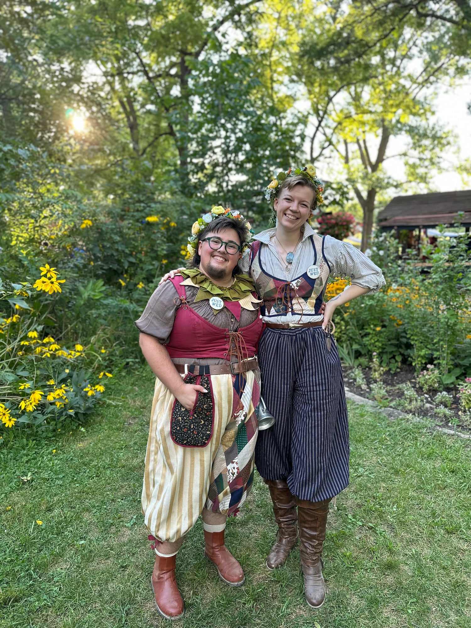 Ro (@merrywanderer94) and Kat (@kit.kaybee) on their wedding day, with Ro wearing the clown collar that Kat bought for them!